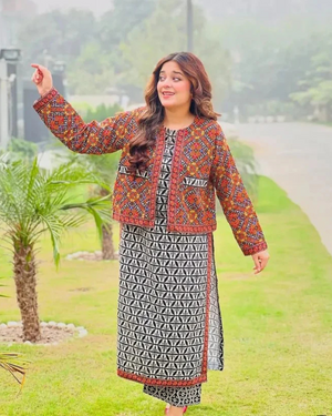 Ajrak Koti digital printed 3 piece EID SALE 50% OFF
